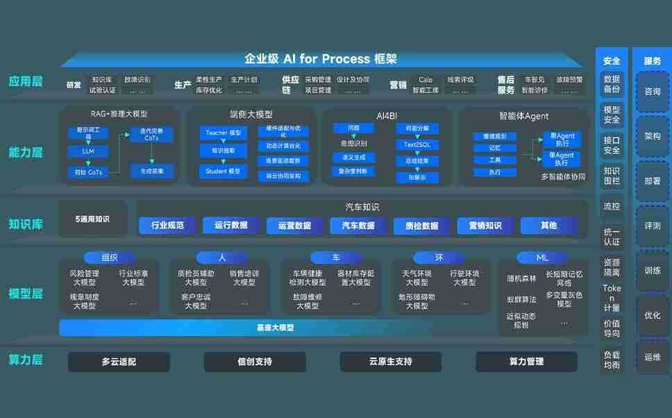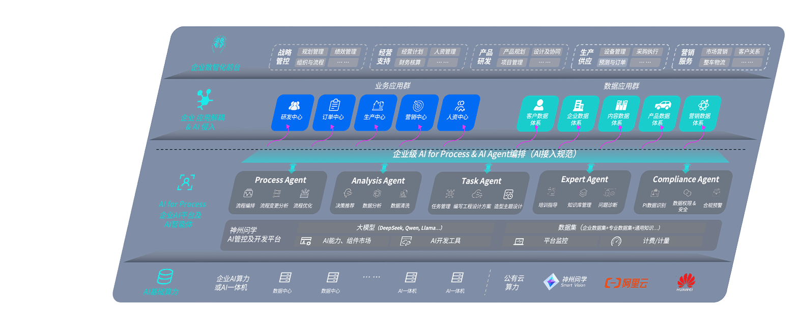 端到端的一站式AI工作空间深度融合了从企业战略规划到日常经营的全流程业务板块,,定向解决车企内部领域多、、部门多、、链条长、、、、场景碎片化等难题,,支持车企快速构建以AI为核心的生产力写作体系,,实现任务执行与AI能力的无缝集成与交互